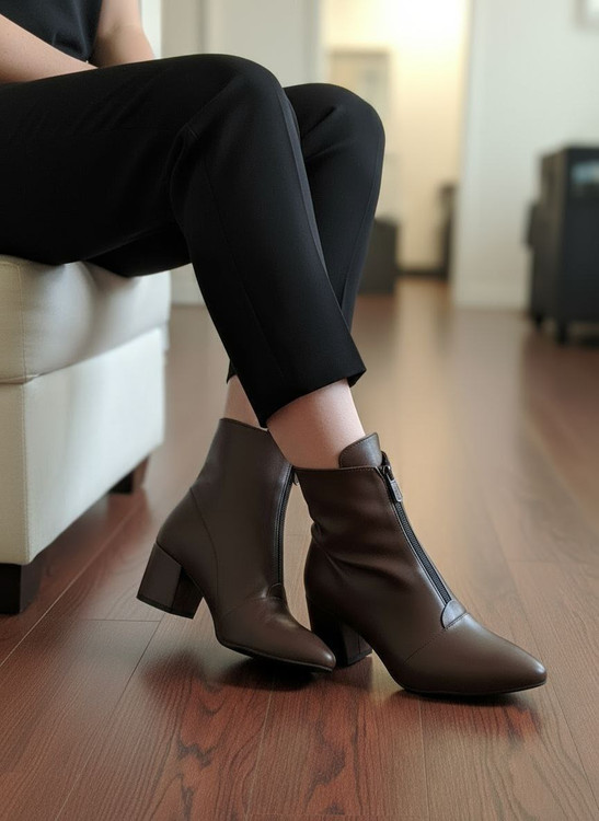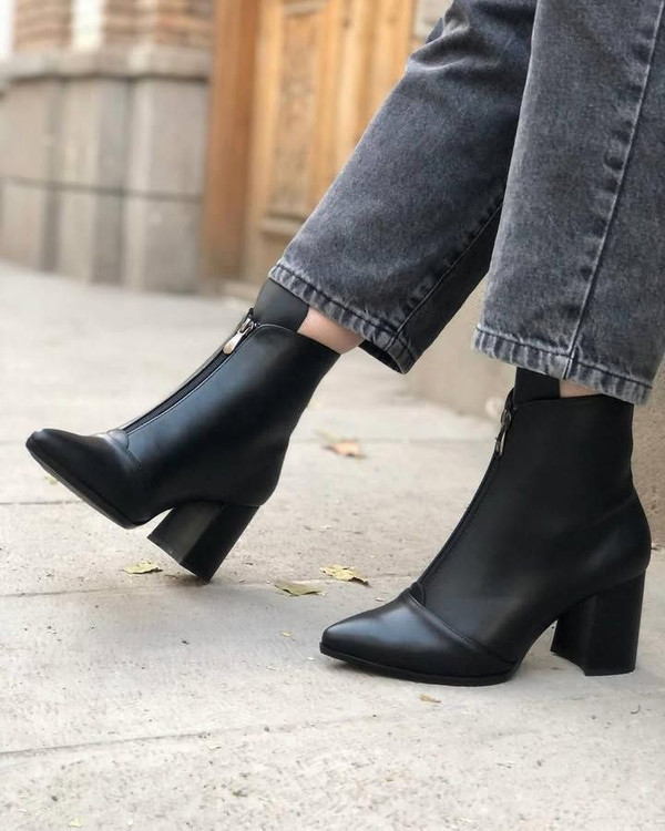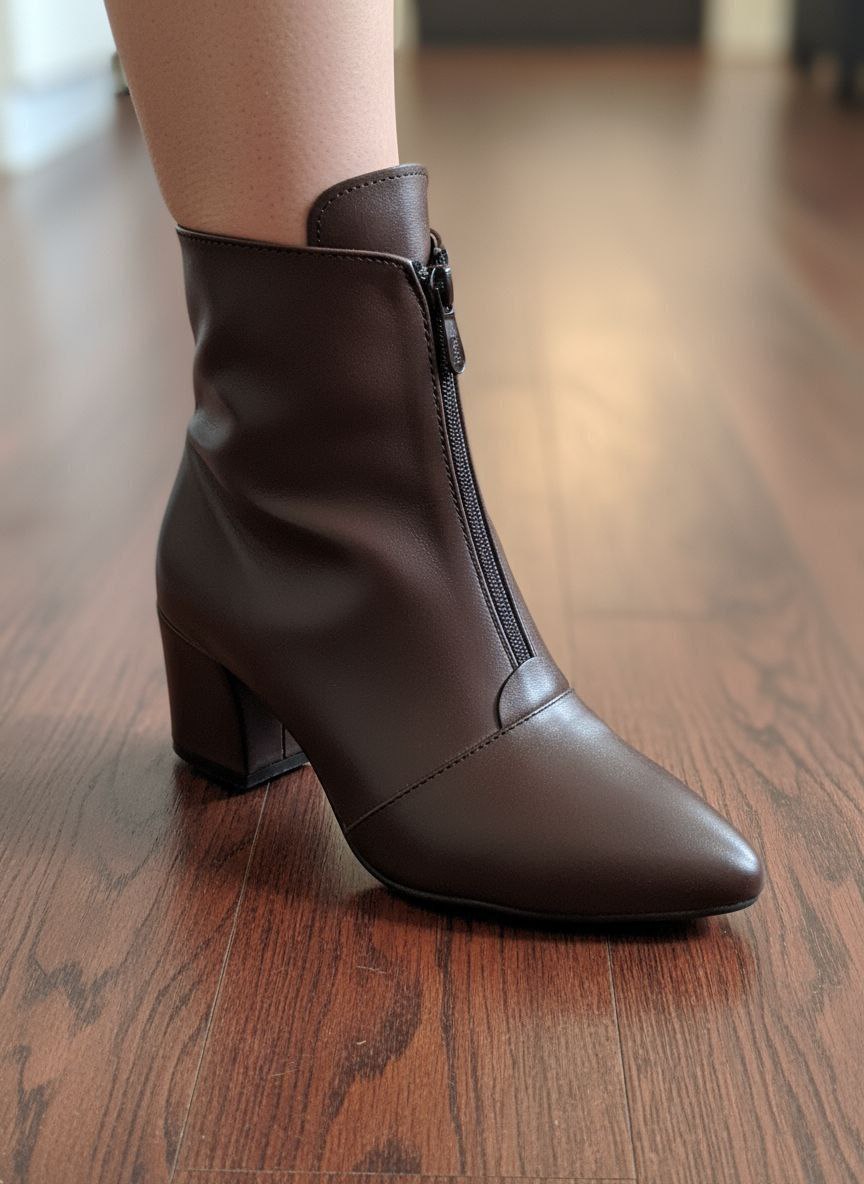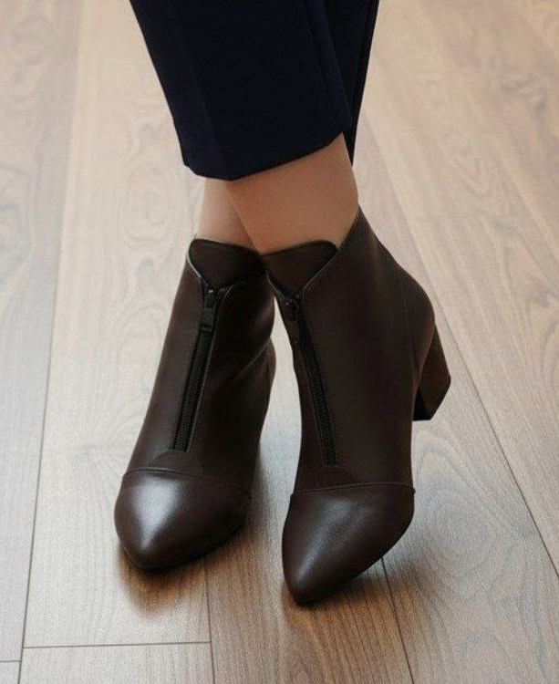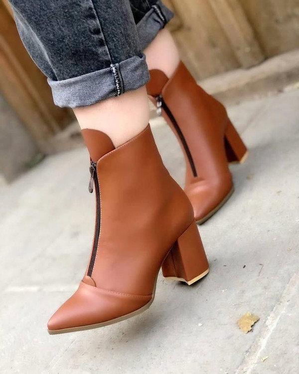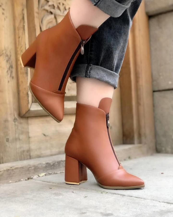 نیمبوت زنانه پاشنهدار مدل جدید با پاشنه 5 سانت ، در دور رنگ مشکی و عسلی، رویه چرم عسلی,کیفیت عالی و تضمینی