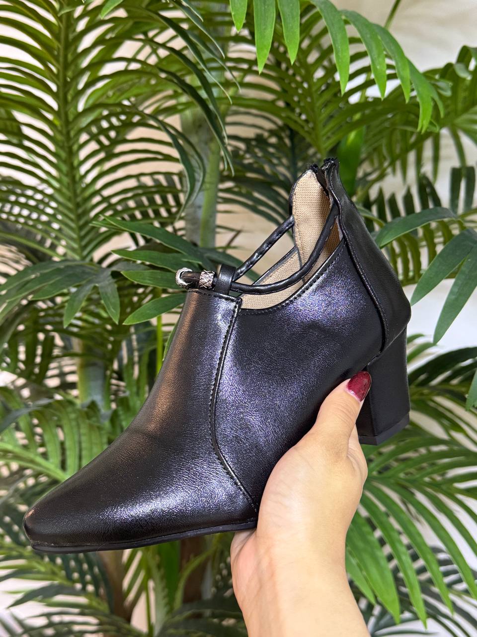 نیمبوت زنانه پاشنهدار مدل جدید با پاشنه 5 سانت ، رنگ مشکی رویه چرم مصنوعی, کیفیت عالی و تضمینی