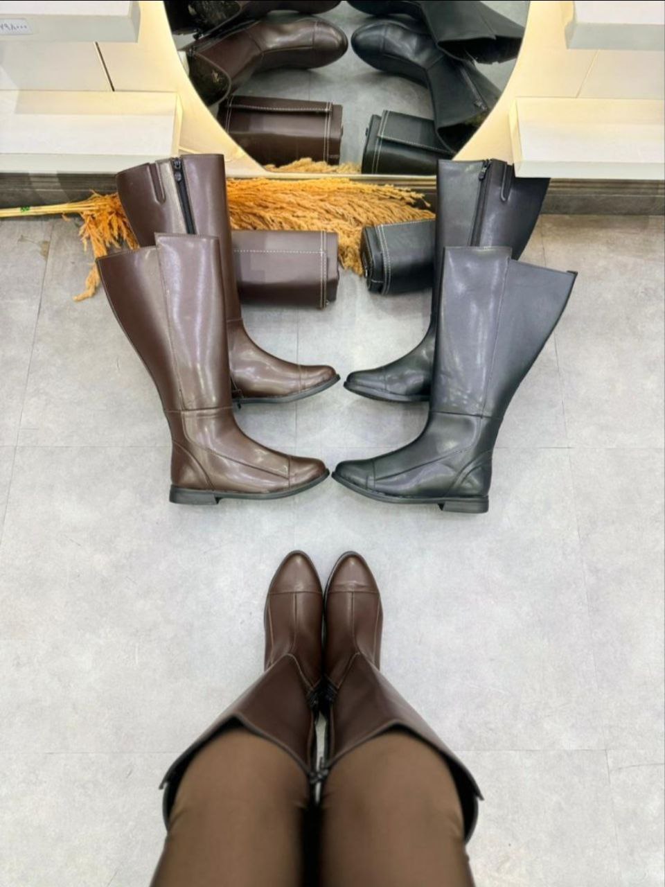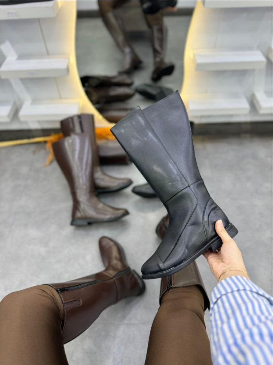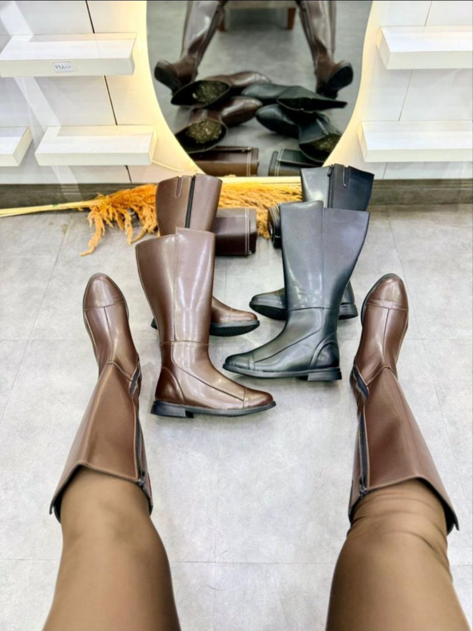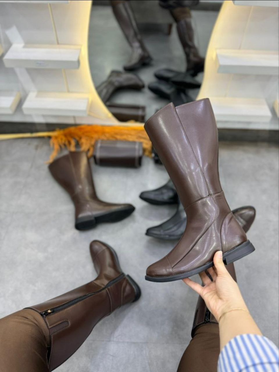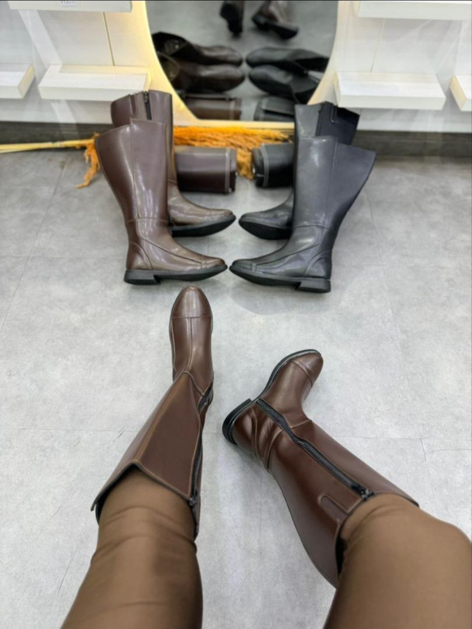 بوت بلند زنانه و دخترانه چرم ، مناسب برای کسانی که ساق پای پهن دارند. بسیار راحت و سبک، قالب کاملا استاندارد