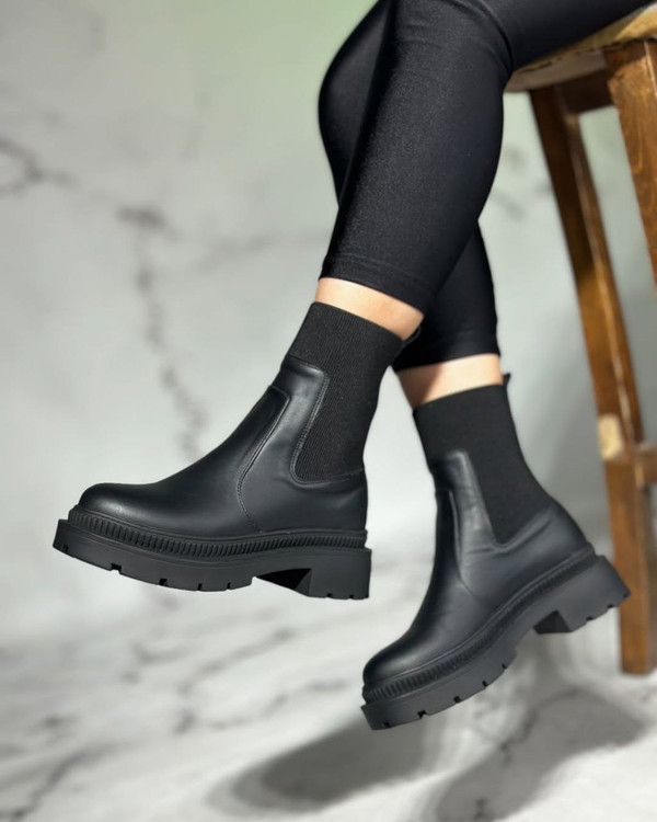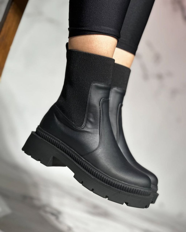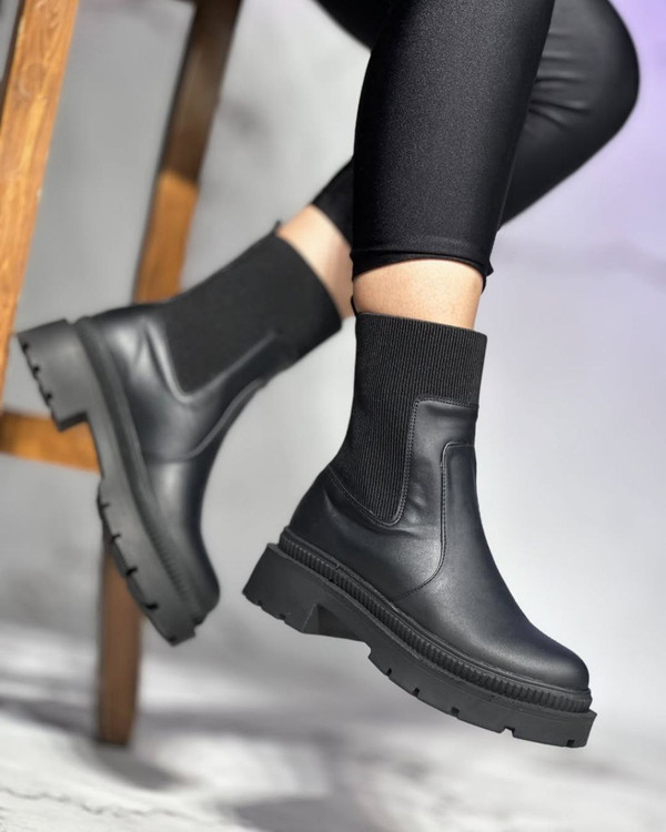 نیمبوت زنانه و دخترانه مشکی ساده مدل دورکش جنس قوی کبریتی