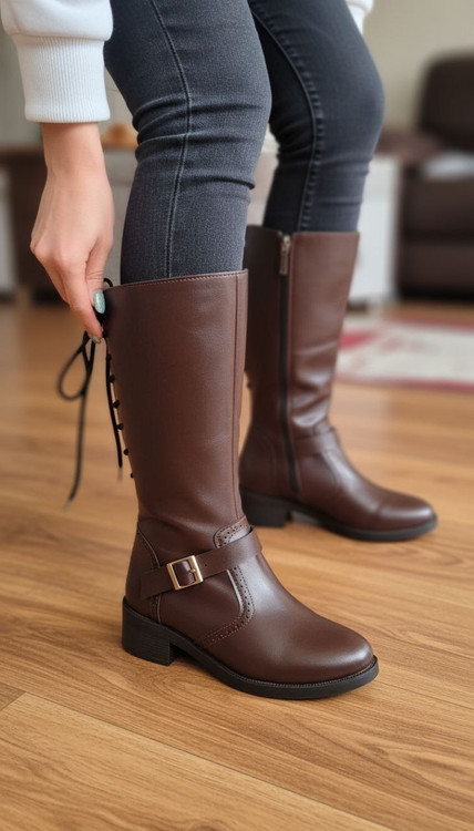 بوت بلند زنانه مدل پشت بندی، ارتفاع بوت با پاشنه 37 سانت، زیره پییو، شیک و راحت با ضمانت، قالب استاندارد ، بسیار با کیفیت.