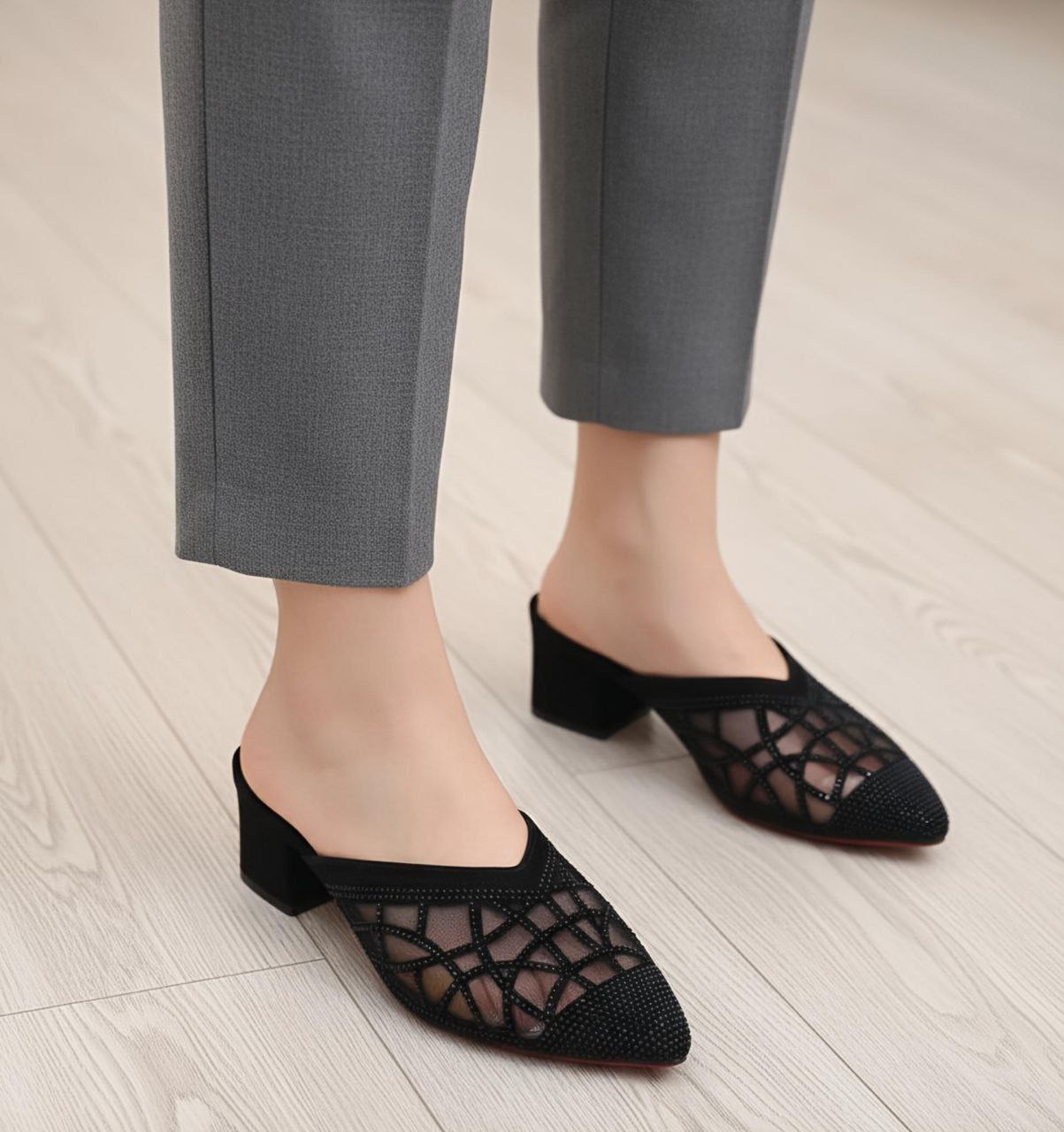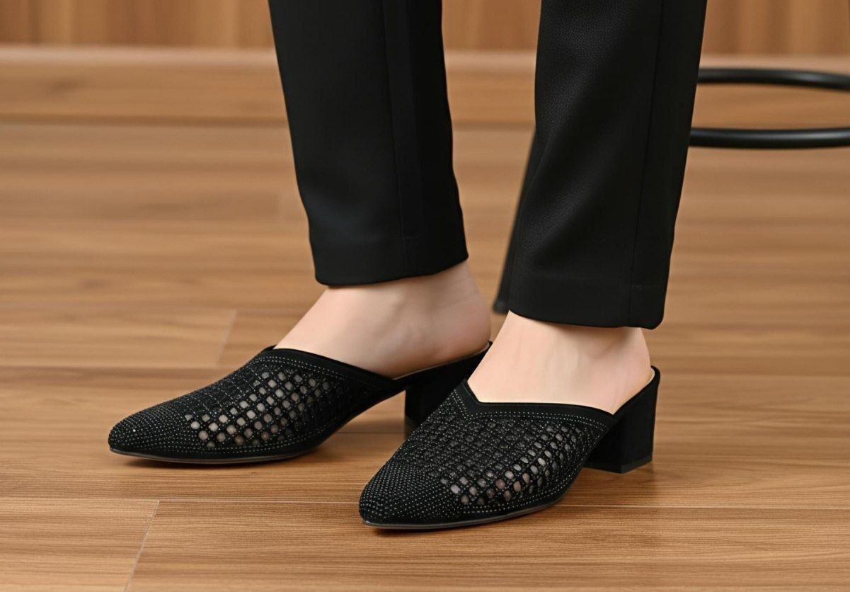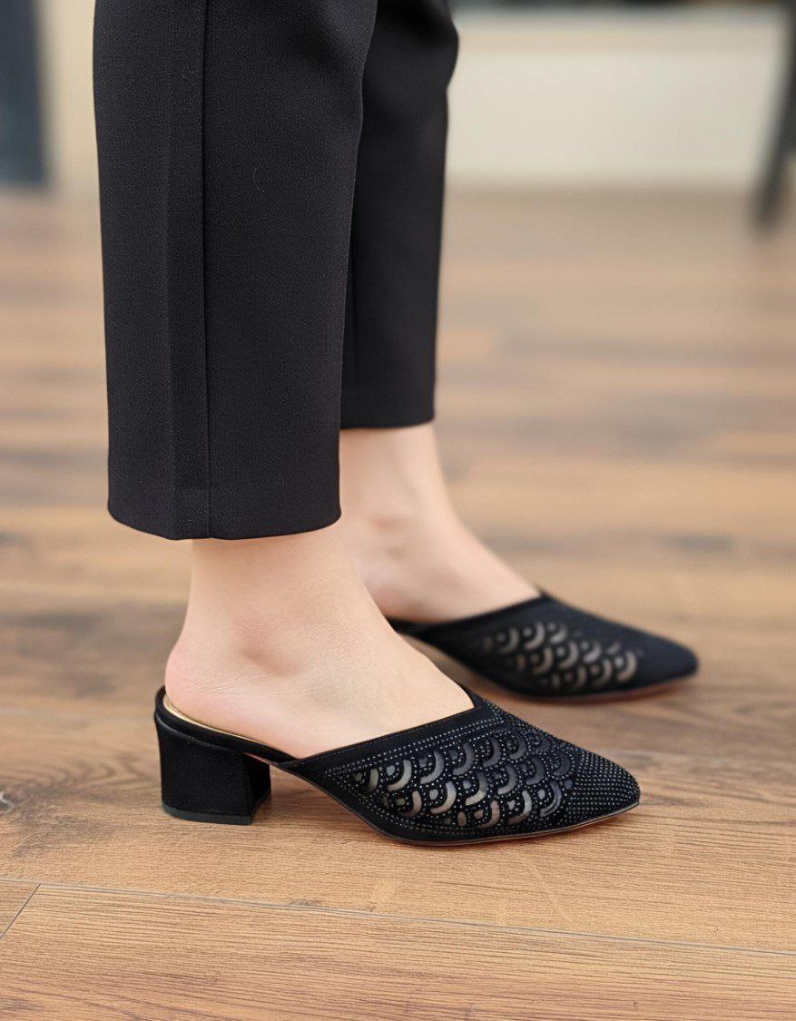 صندل نگینی زنانه پاشنهدار مدل ساغر، قالب استاندارد،راحت و سبک و شیک مناسب خونه و مهمونی و مجلسی F-1209
