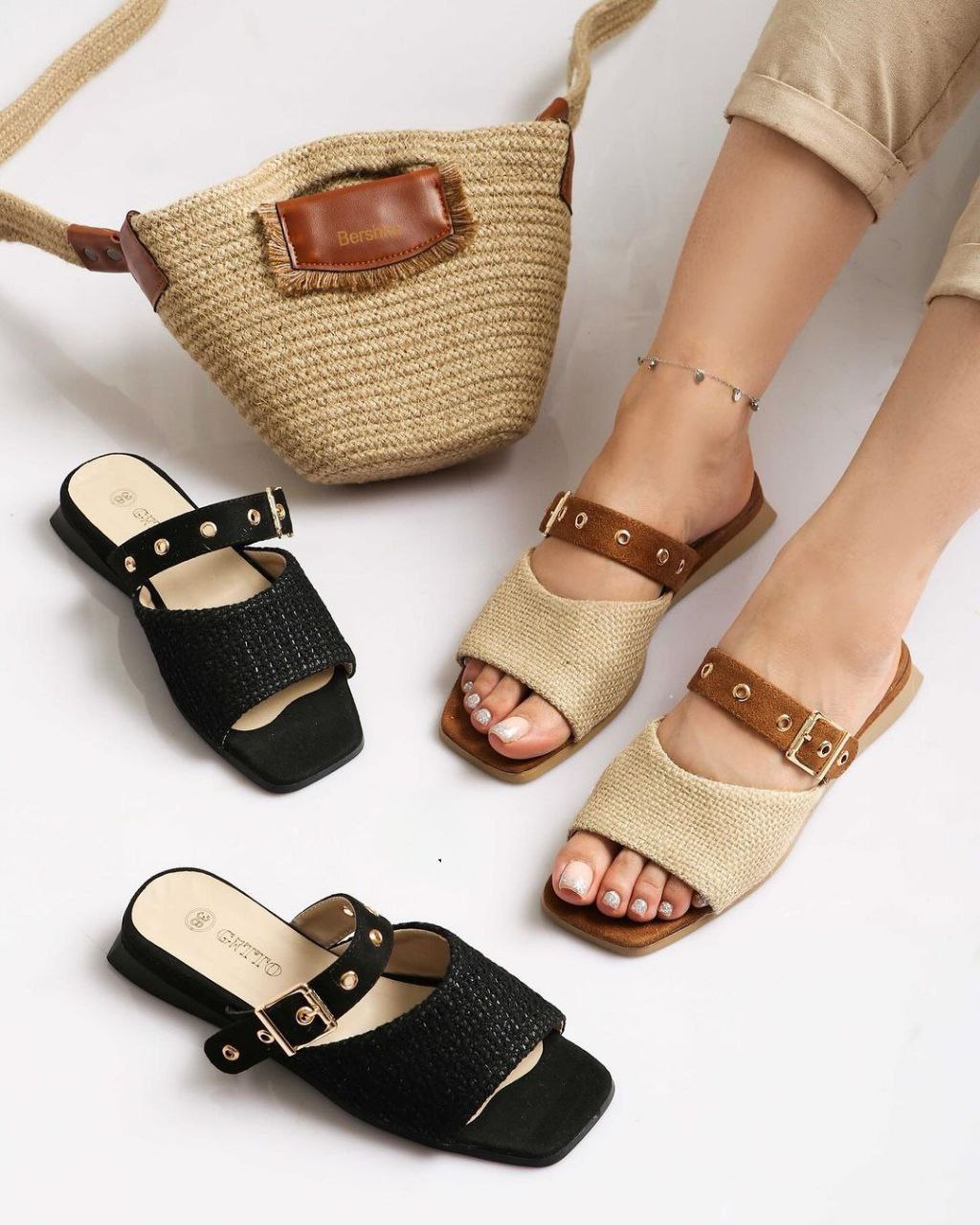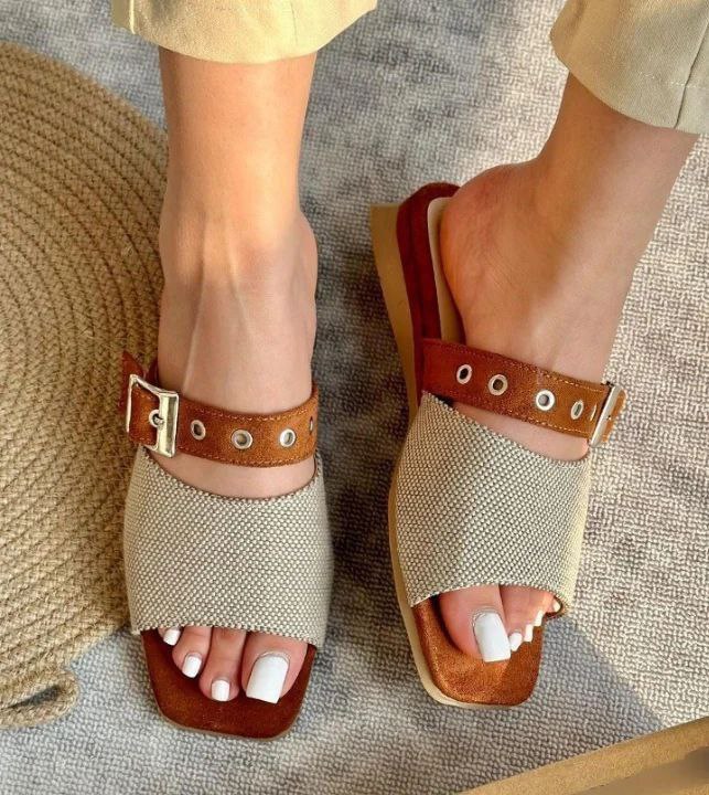 صندل زنانه مدل اسلیپر عسلی وارداتی