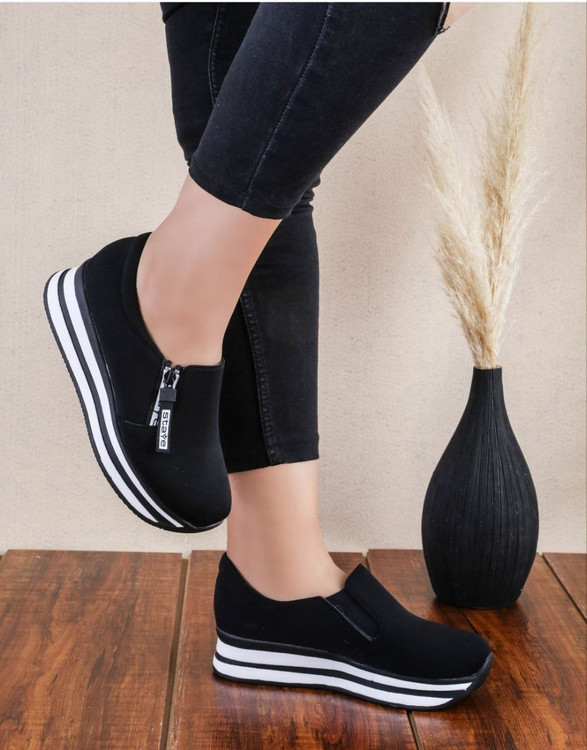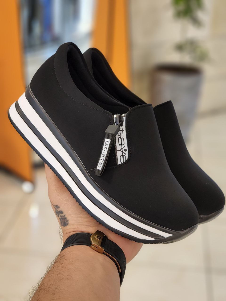 کفش زنانه طبی مشکی راحت و سبک و نرم، مناسب برای پیادهروی طولانی ، زیره پیوو لژ 4 سانت ، رویه استرج ، ضد آب با کیفیت تضمینی